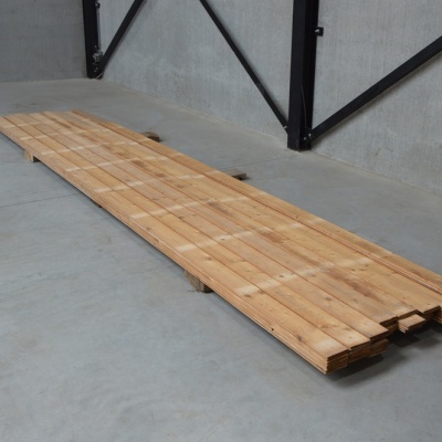 Deze planken worden door Destijdsch uit oude sloopwerken gehaald. De planken worden ontspijkerd en klaargemaakt voor een volgende ronde. Aan de lange zijdes zit een mes en groef. Ons hout heeft karakter en duurzamer kan niet. Zo zie je her en der spijkergaatjes en mooie scheurtjes. De planken zijn eenvoudig te leggen als vloer of te gebruiken als wand of plafond.