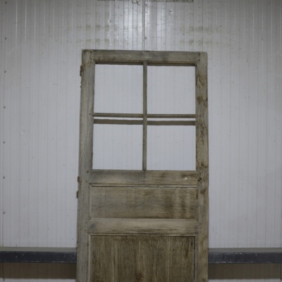 Oude geloogde eiken deur met ruitverdeling