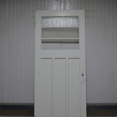 Oude Bruynzeel zesvlaks paneeldeur met 3 ruitjes