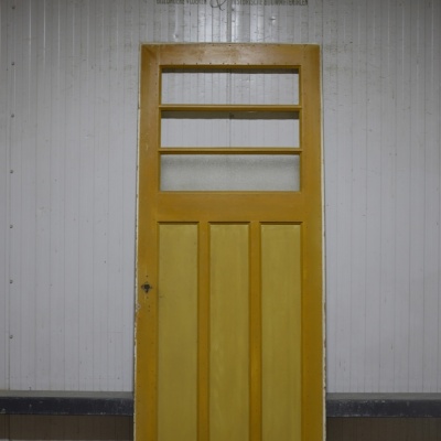 Oude Bruynzeel zesvlaks paneeldeur met 3 ruitjes