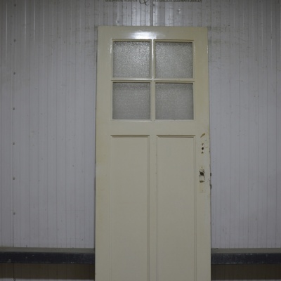 Oude Bruynzeel drievaks paneeldeur met ruitjes
